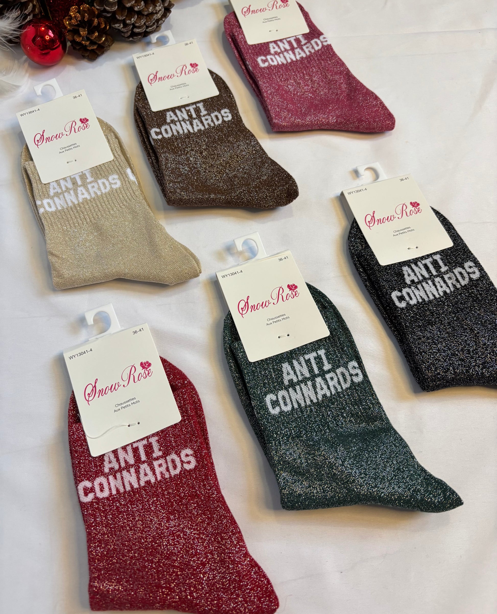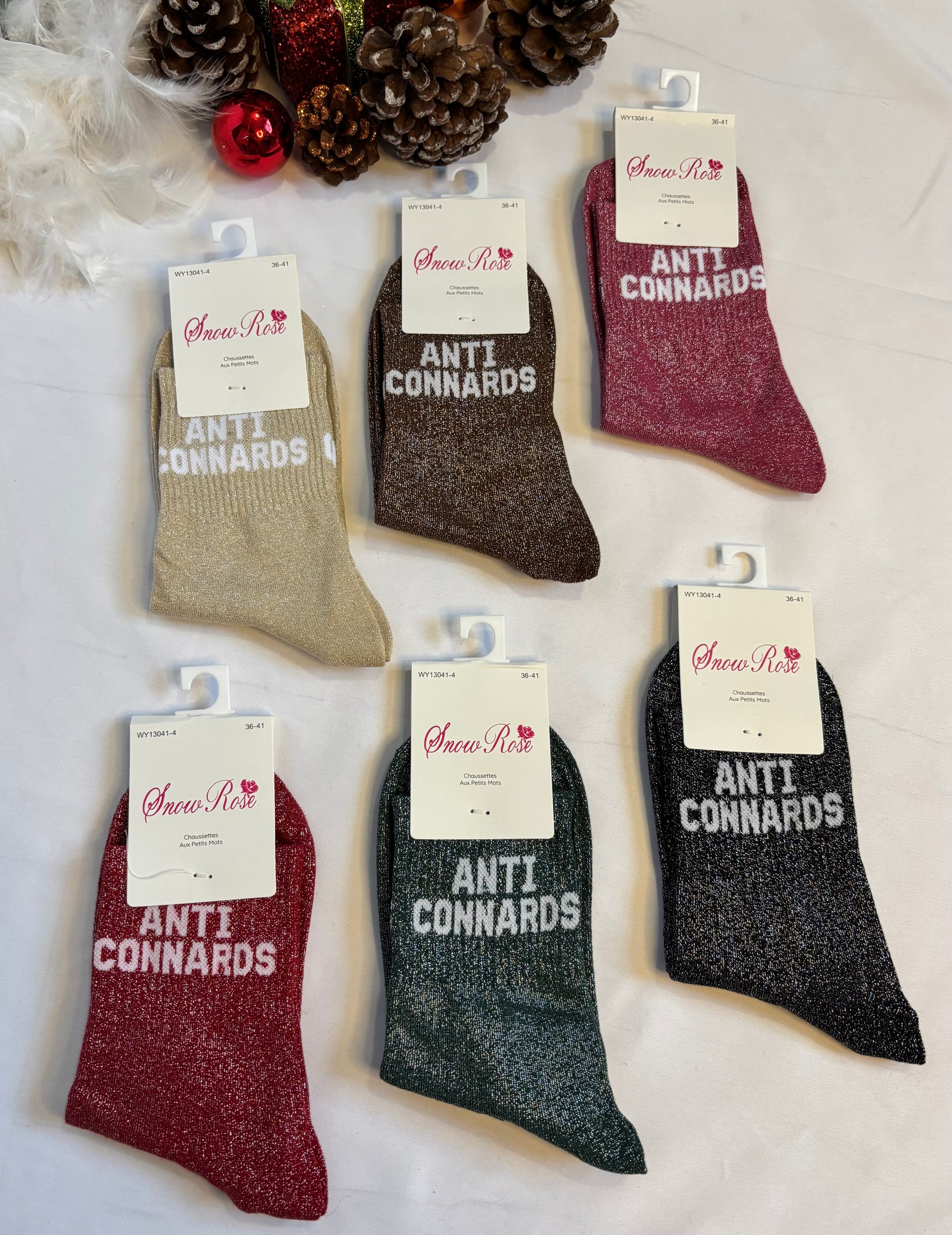 •Chaussettes à paillettes à inscription « Anti connards ».
