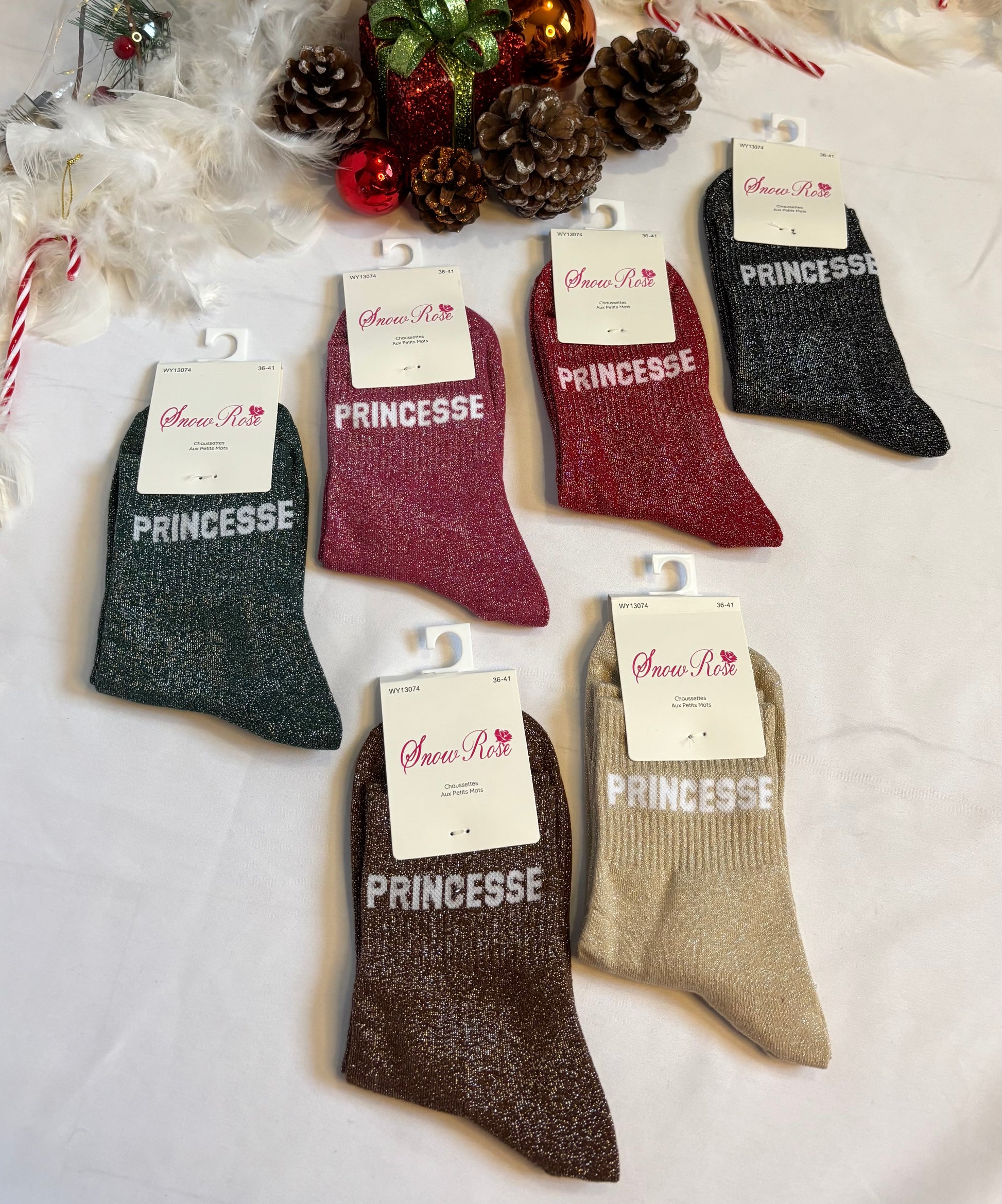 •Chaussettes à paillettes à inscription « Princesse ».
