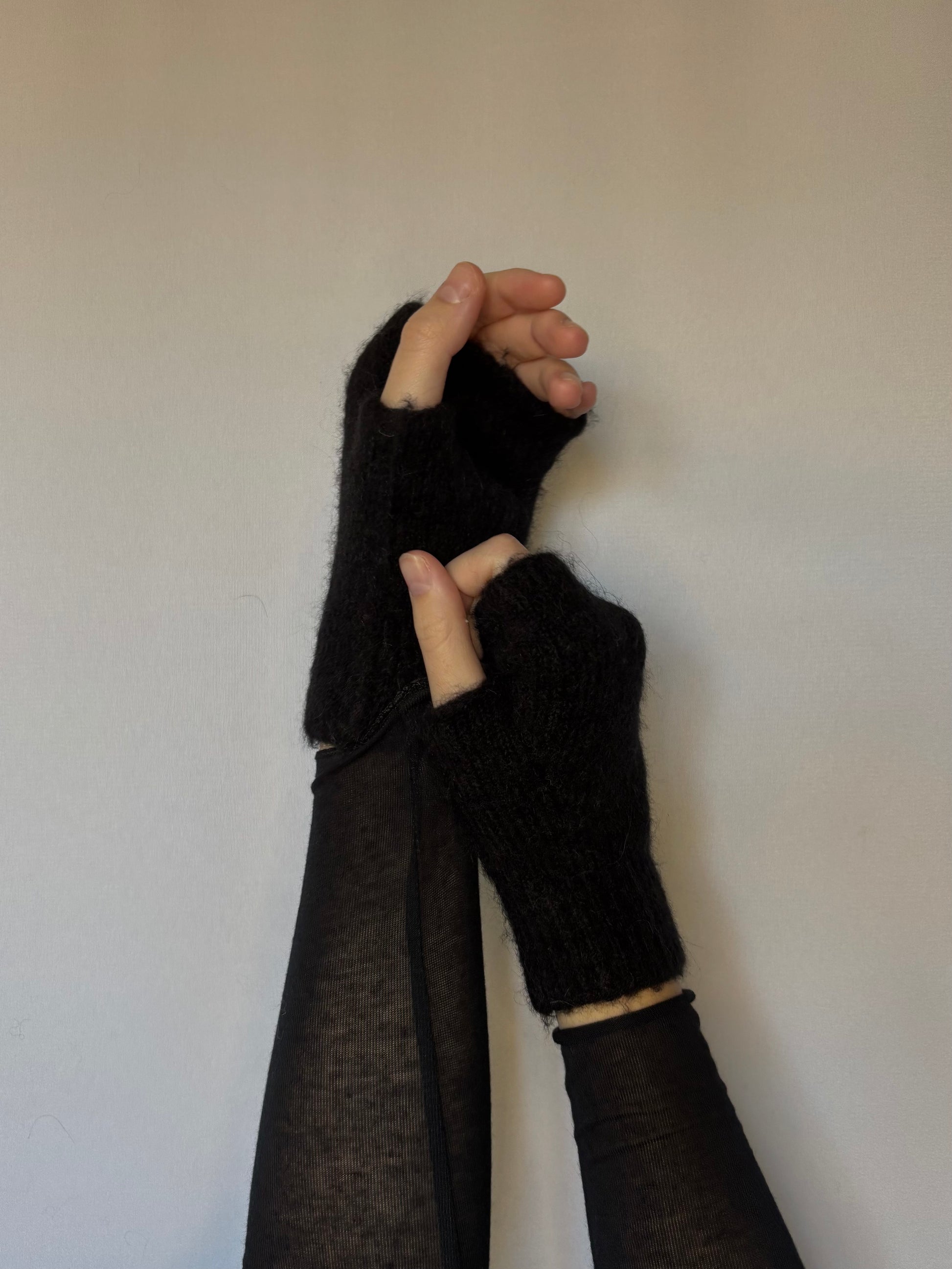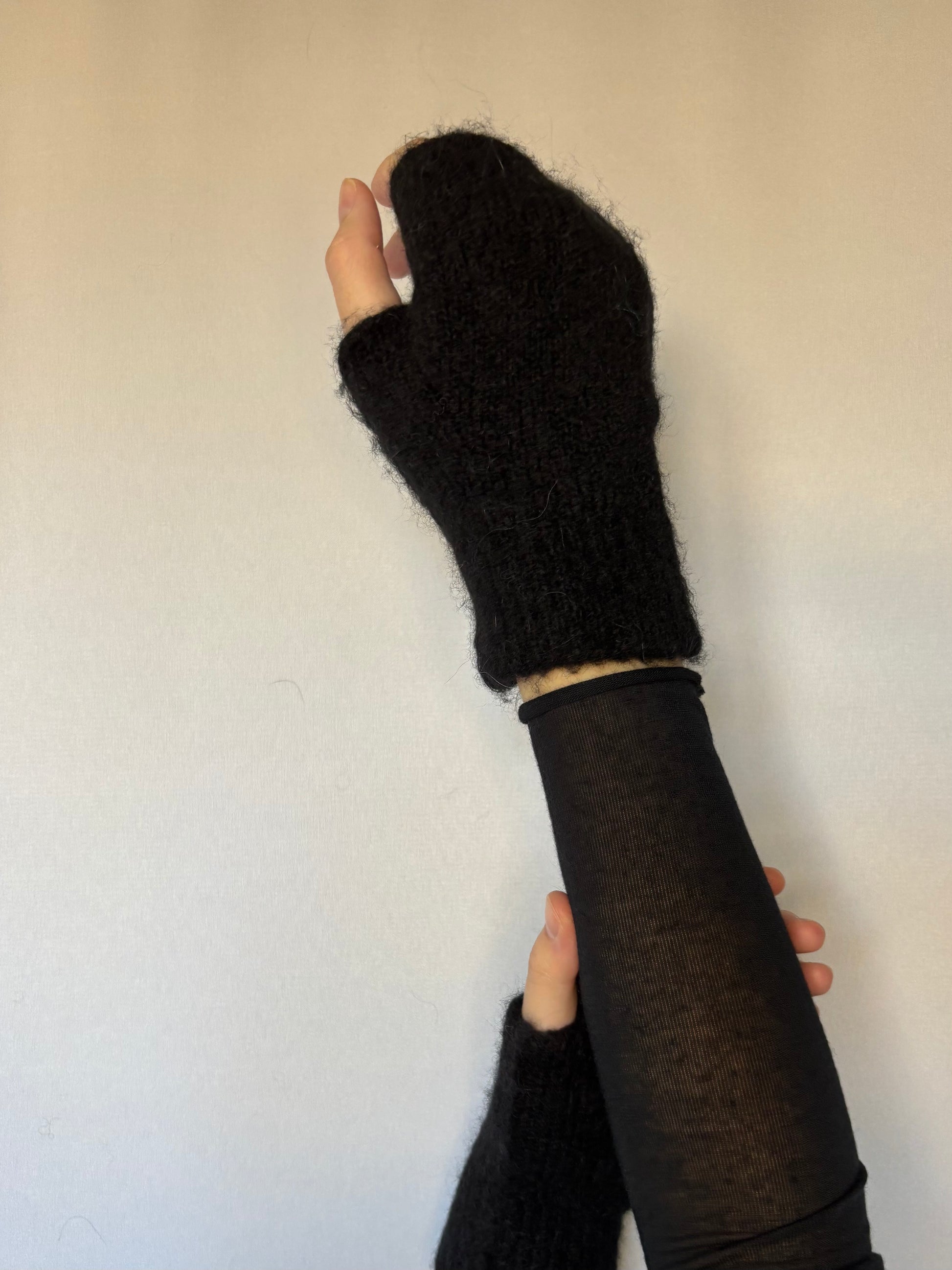 Mitaines en alpaga mélangé - noires