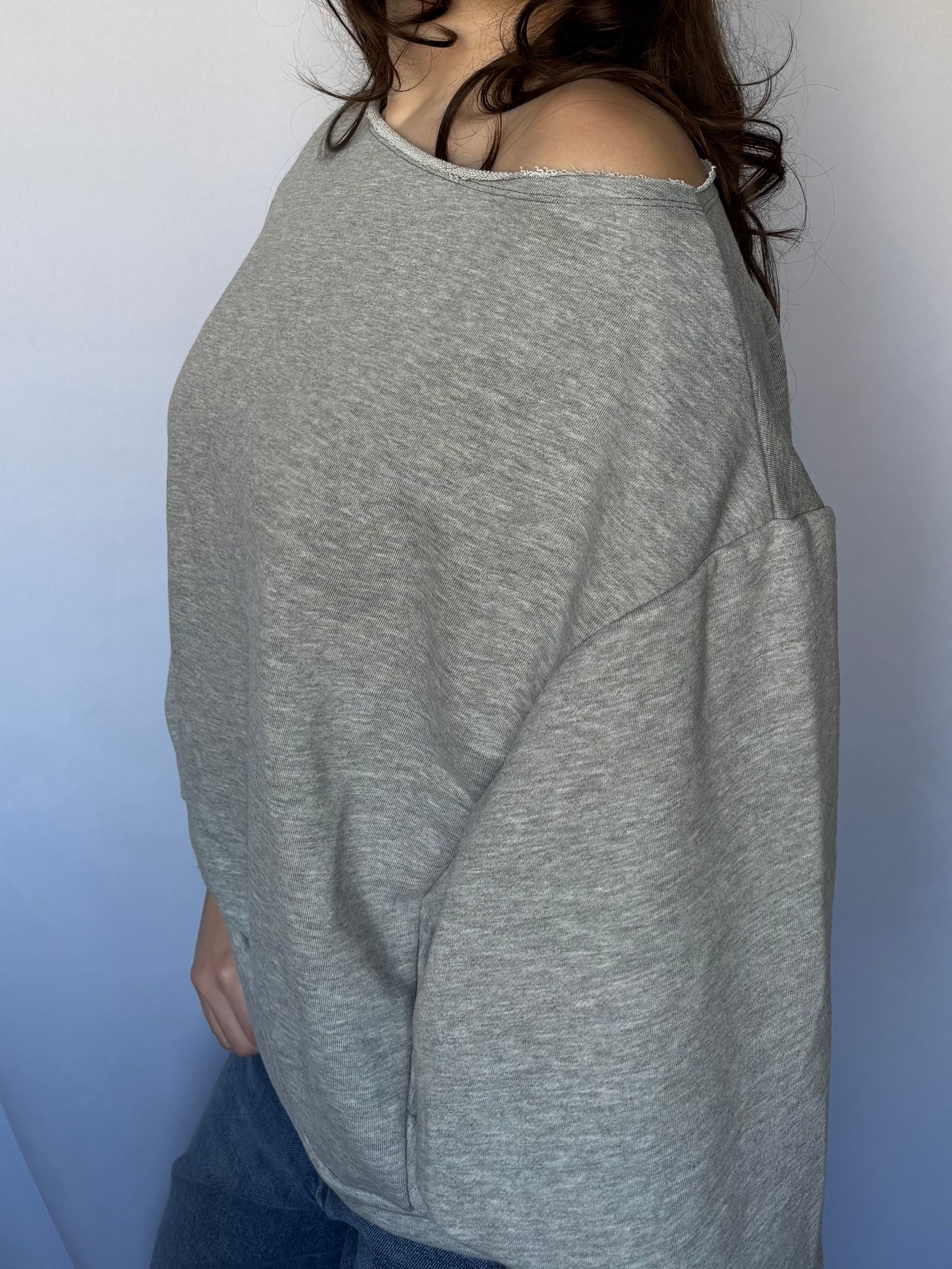 Sweat asymétrique en coton col effet usé - gris